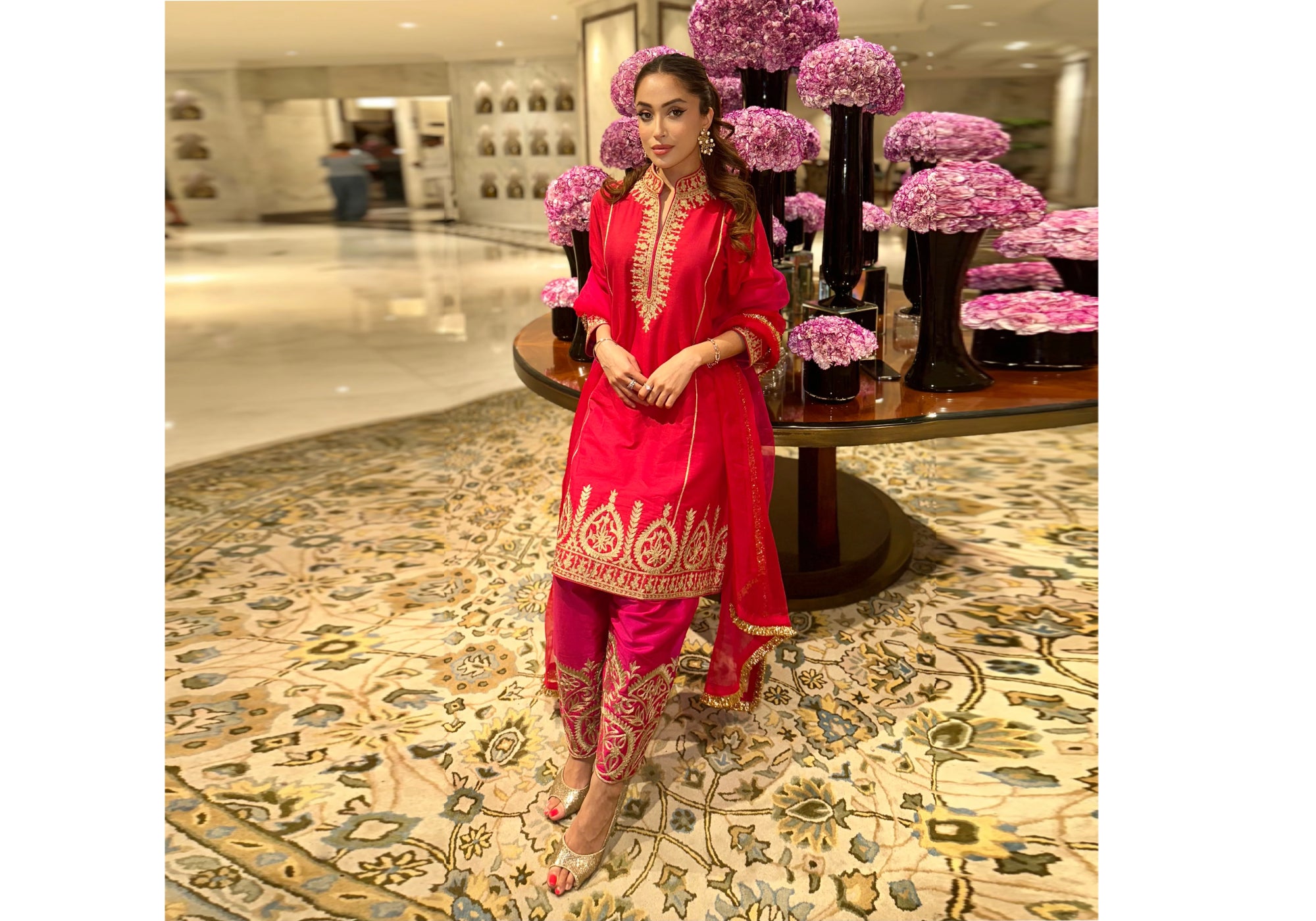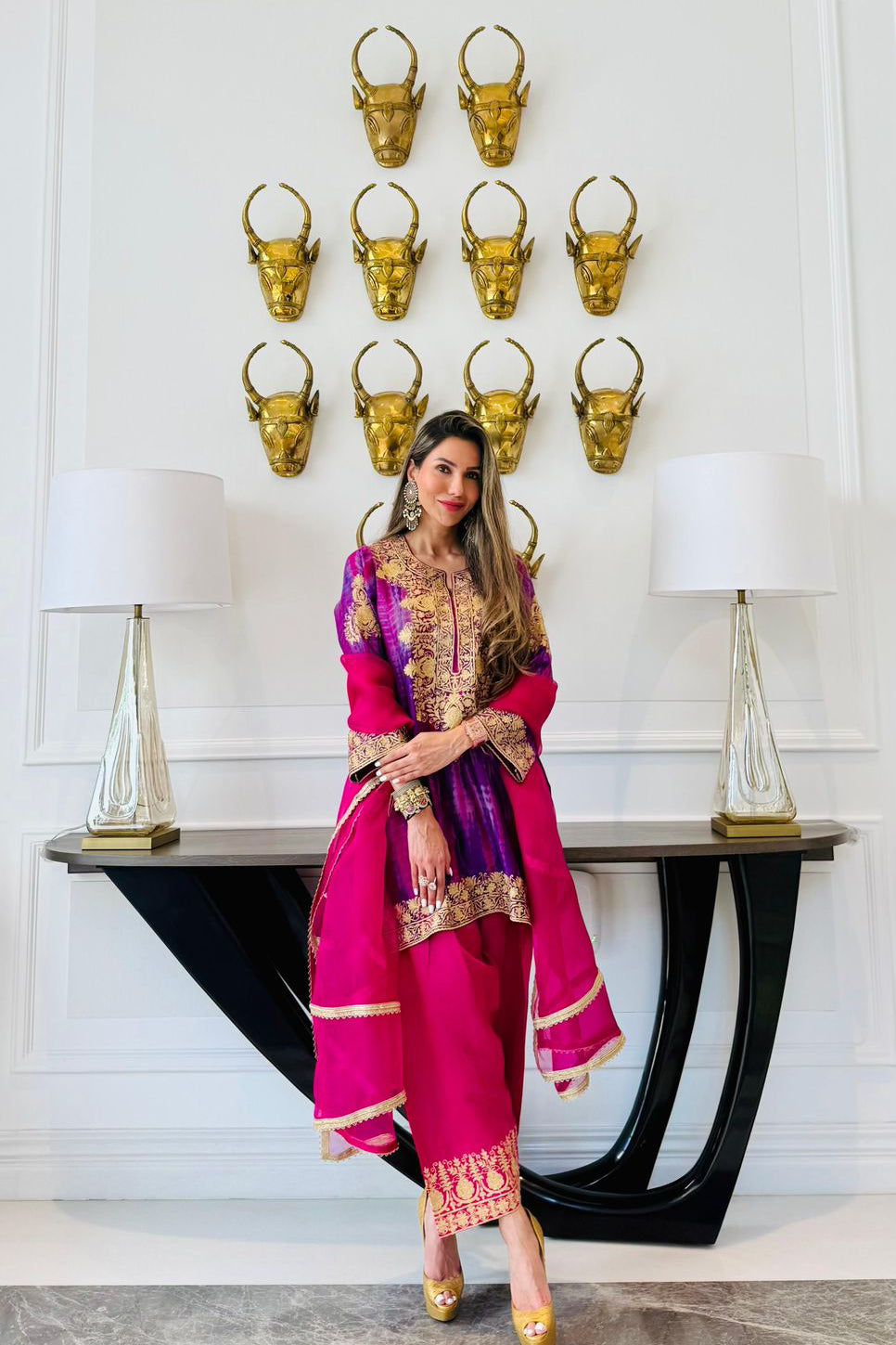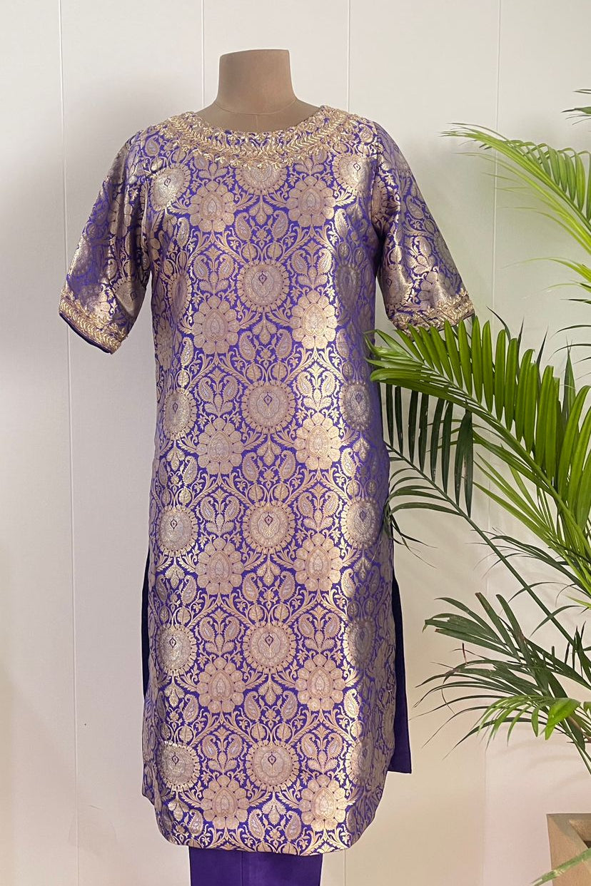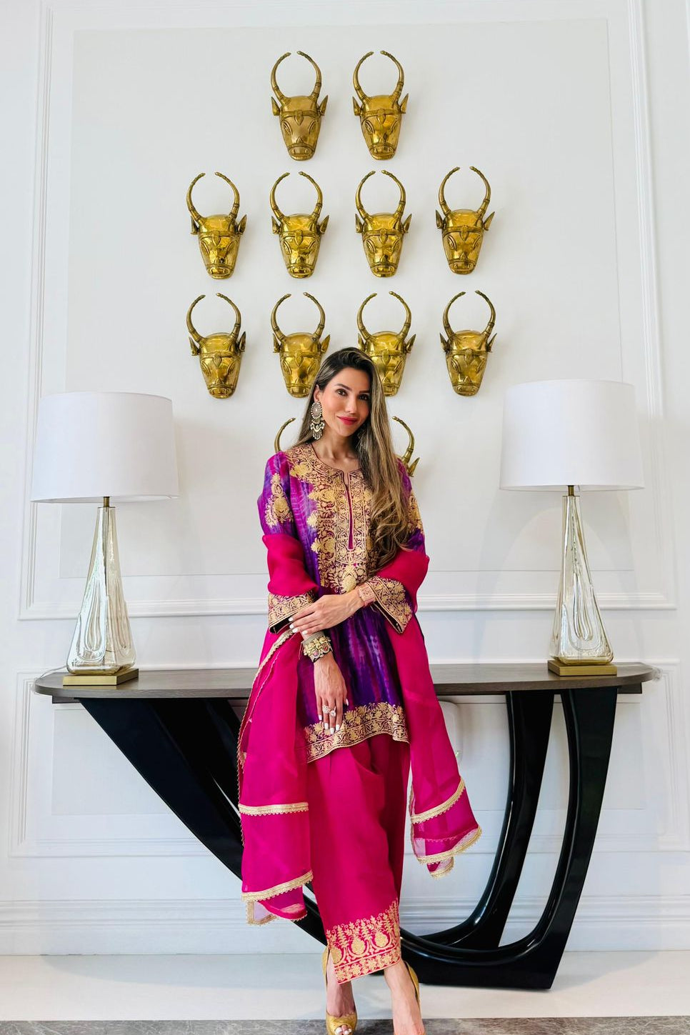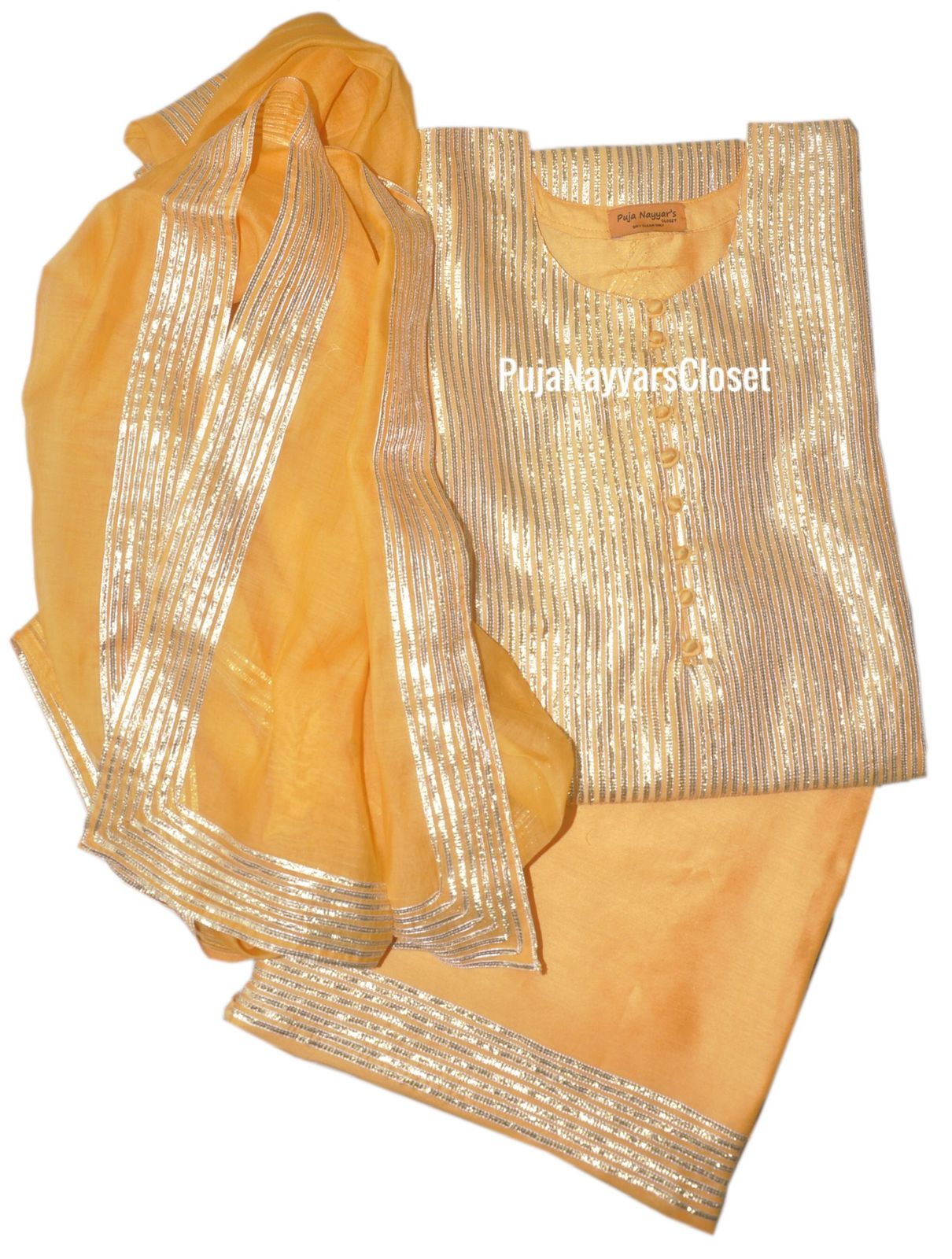 A masterpiece is evocative of style and elegance. An ensemble for summery days and starry nights. Teamed with a self striped soft chanderi dupatta in the same colour palette and tulip pants.