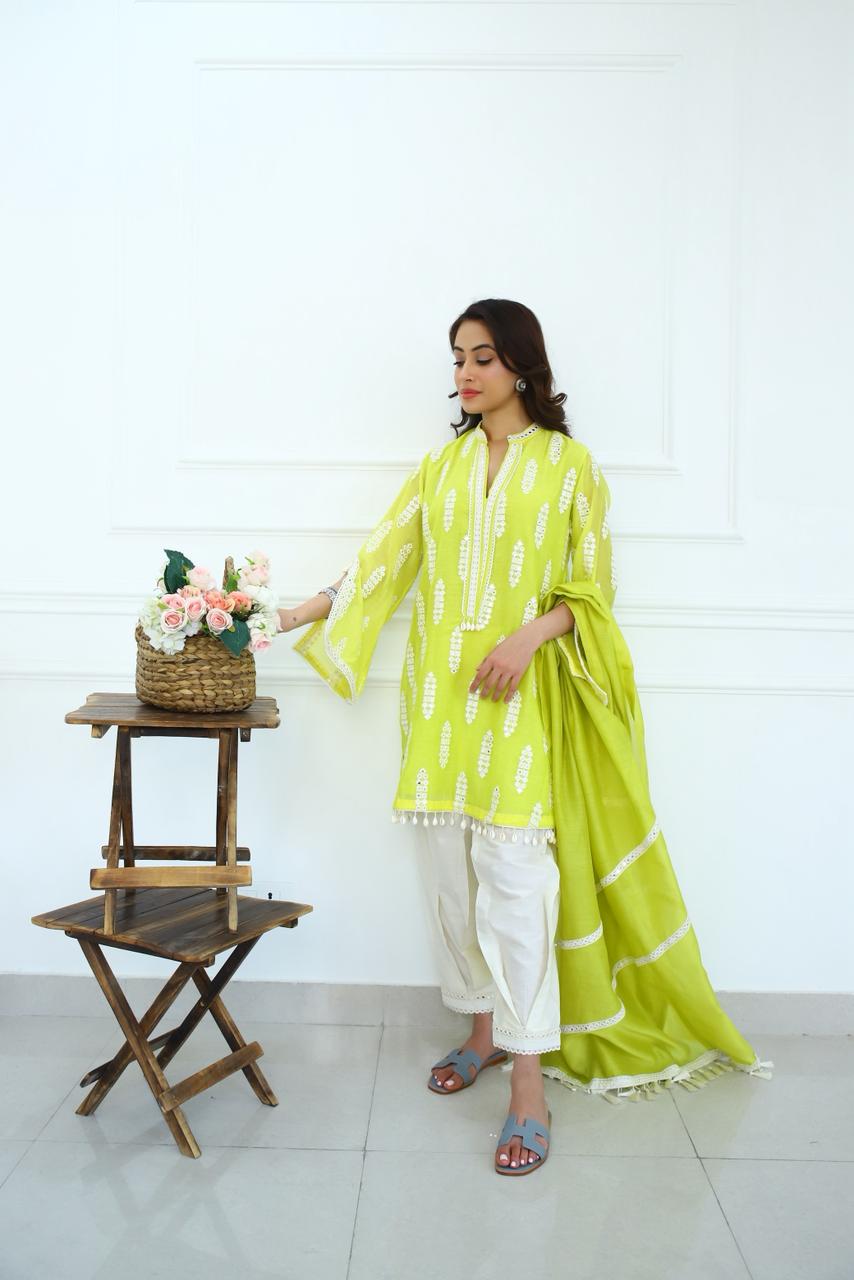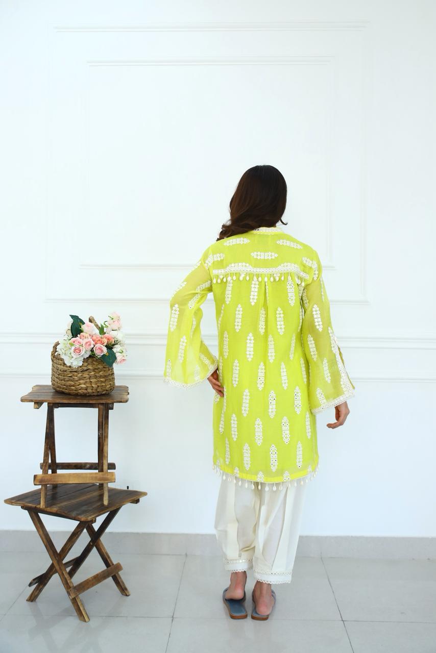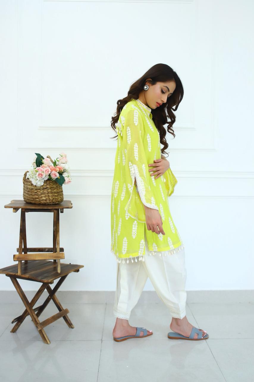This short kurta combines exquisite embroidery, delicate detailing, intricate embellishments and a soothing soft fabric for a perfect blend of tradition and modern flair. Paired with a stylish salwar. Wear it to a casual event like a coordset or add a dash of elegance with the duppatta .