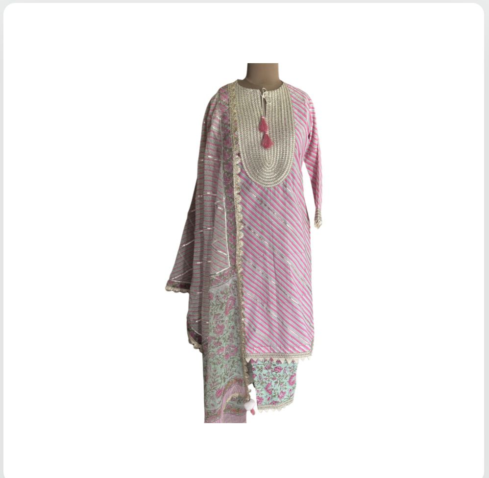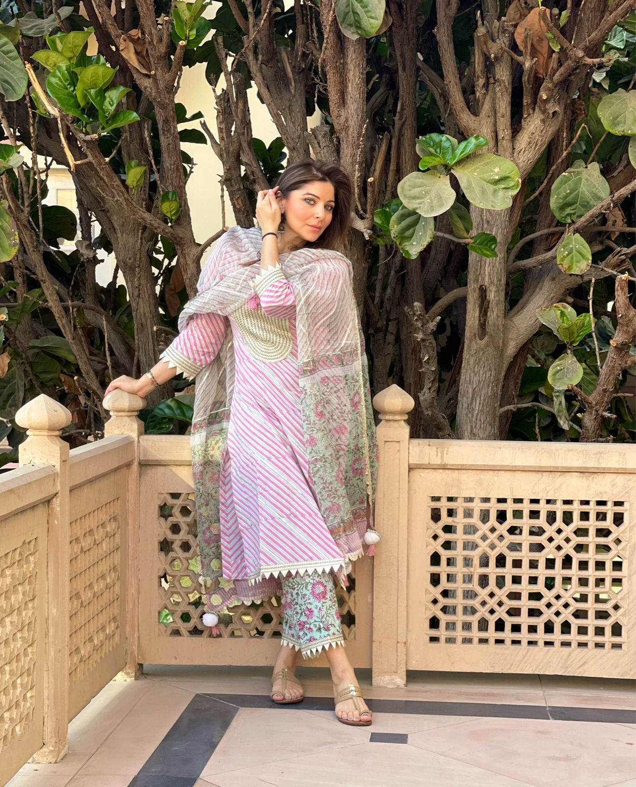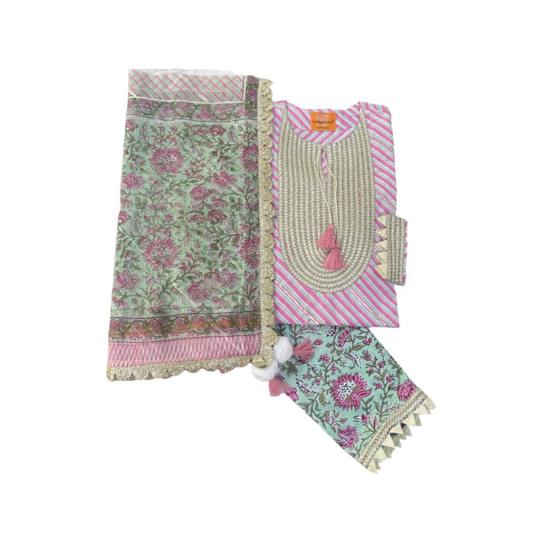 This signature & an unusual print is a perfect combination of leheriya kurta paired with floral print pants. This will meet your everyday needs yet keep you in style
